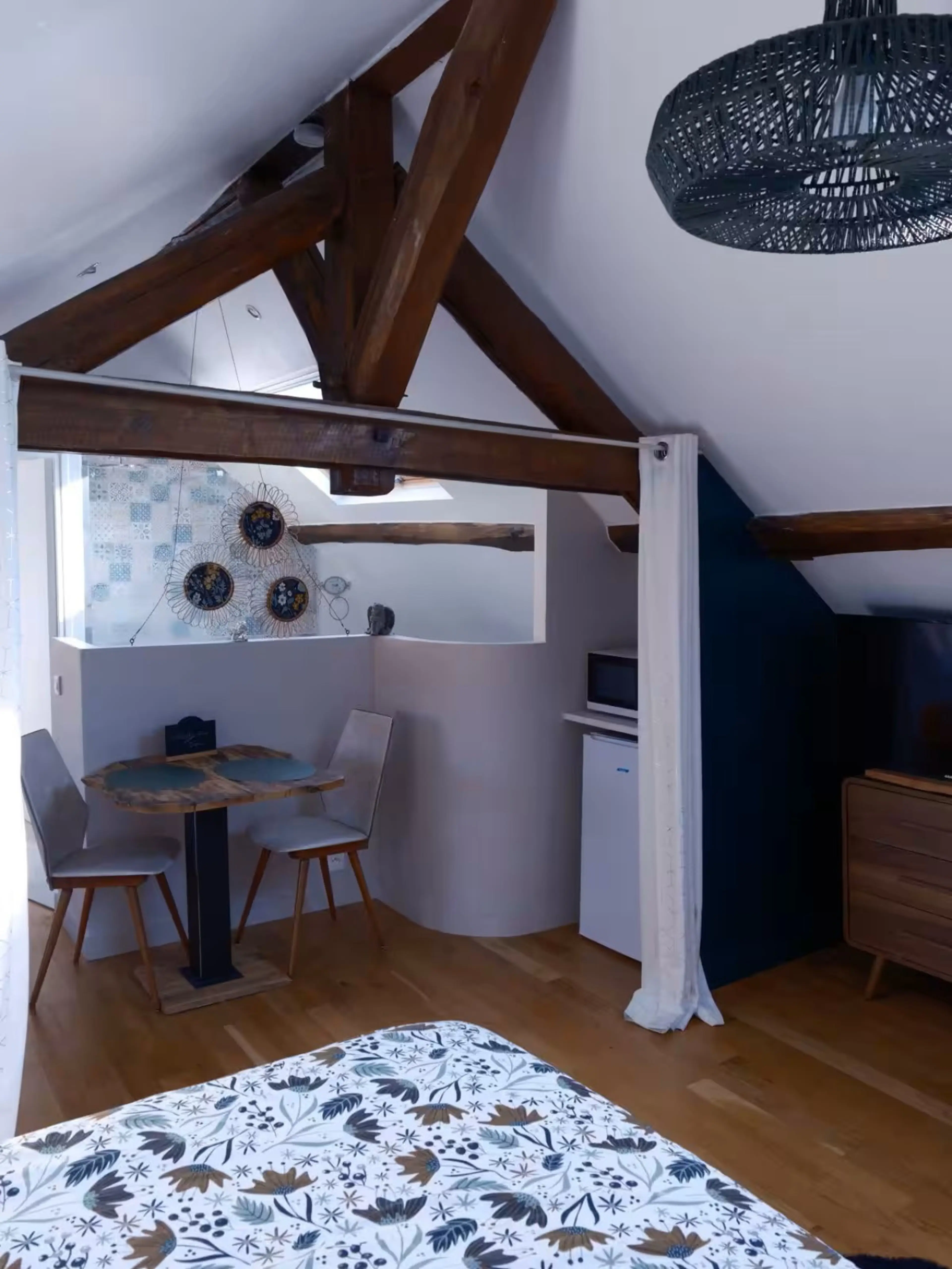 Découvrez le nid d'amour Gabriel Ange, une suite résolument atypique avec douche à l'italienne et baignoire ilot. Vous disposez d'un petit coin repas avec micro-onde et machine à café Nespresso. Ce petit nid est en étage et au calme. Vous disposez cependant d'une terrasse privative pour votre petit...